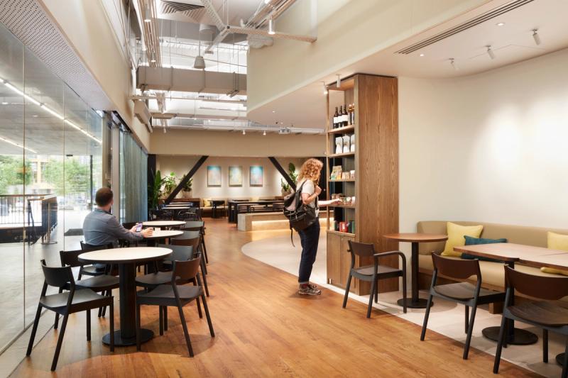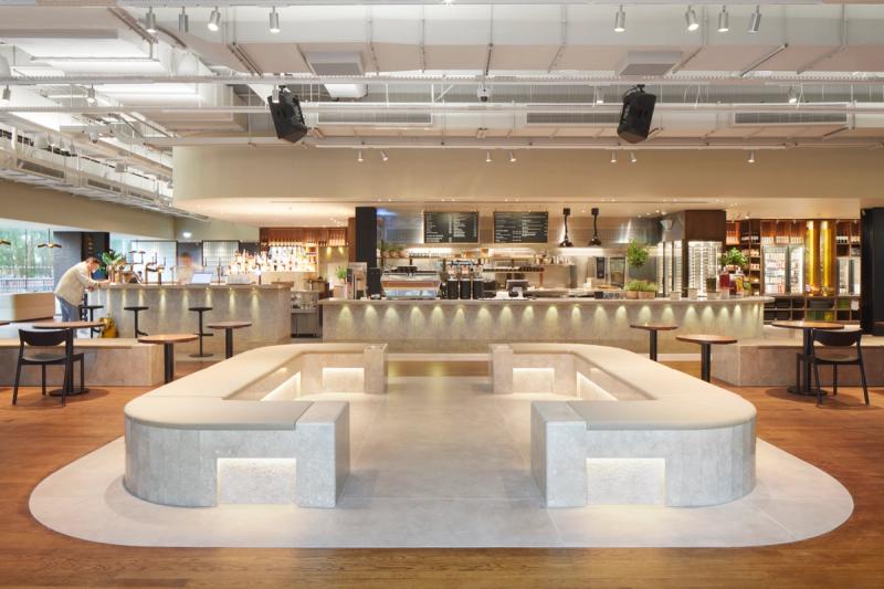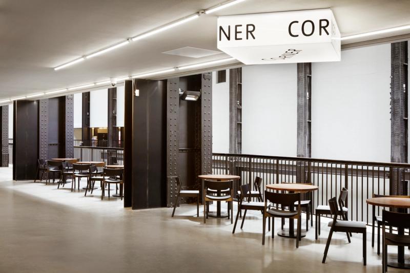At its core, this is a place for food and congregation. The scheme encompasses a bar, food servery, retail and coffee counter as the café's focus. These functions are accommodated within one continuous counter expressed in bold geometric forms that echo the monumental structures of the original power station.