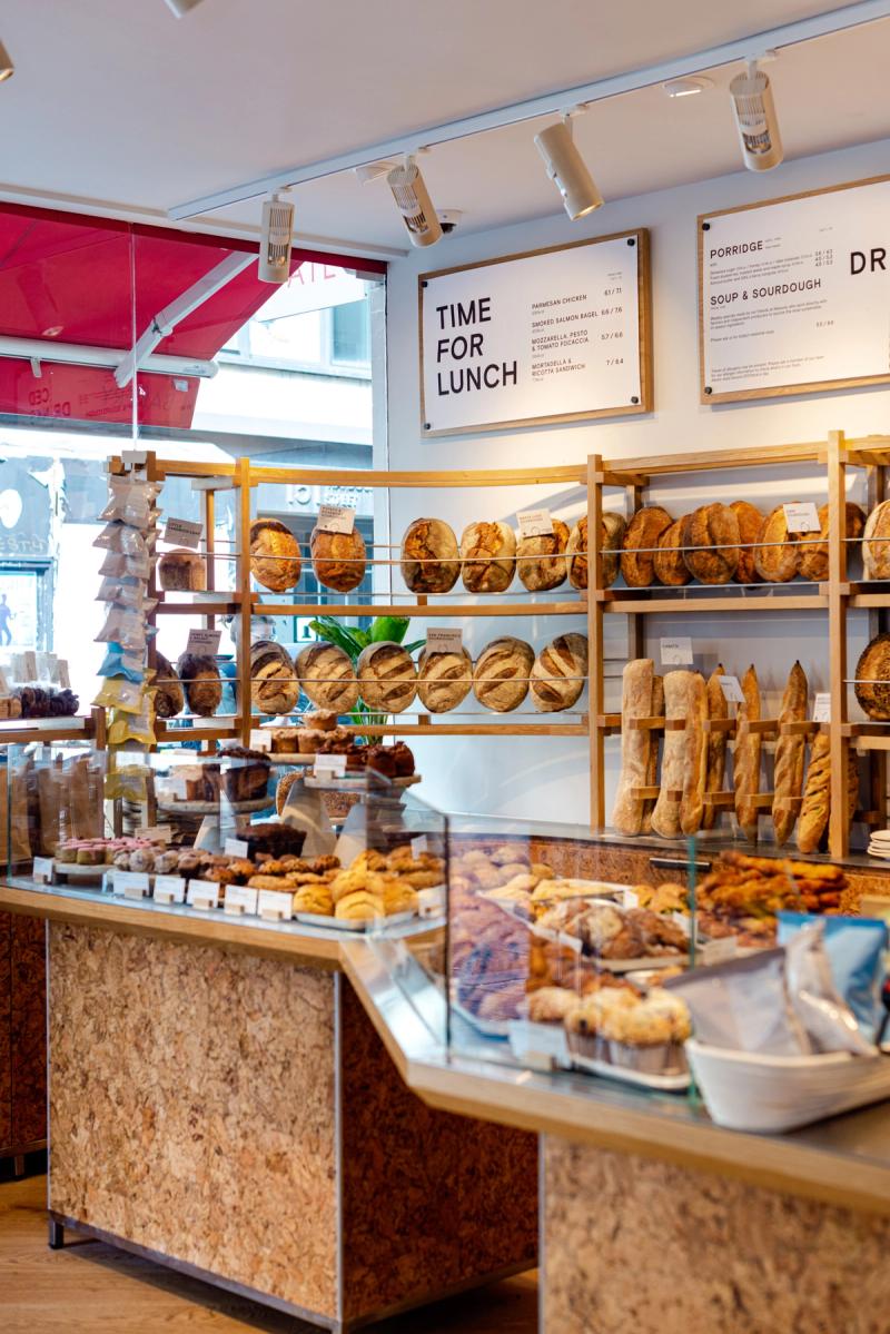 Cork counters and solid wood racking at Gail's Soho © Kat Antos-Lewis