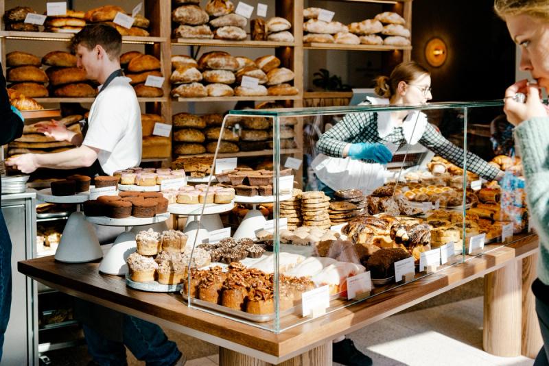 Holland Harvey designs spaces that reflect Gail’s values, creating comfortable and efficient environments. Design principles remain consistent (bread in the window, coffee machine up front, seating at the back), but each bakery’s format evolves through an iterative process. The bakeries are located in diverse settings, from glass boxes at NEO Bankside to high street shops in Brighton, Brutalist colleges in Oxford, and former banks in Manchester.