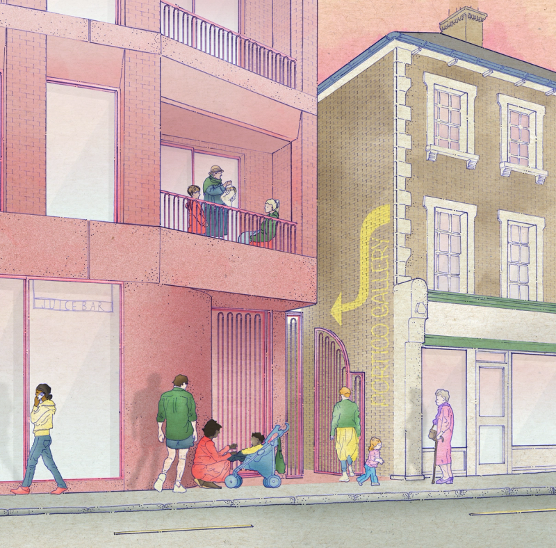An important asset for the local community, Portico Gallery has been providing entertainment to local people since its construction in 1885. Our building pulls back on one corner to provide a generous and much-improved entrance to a refurbished hall, creating safe, well-lit access for local residents and better integrating the centre with the town.