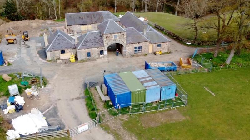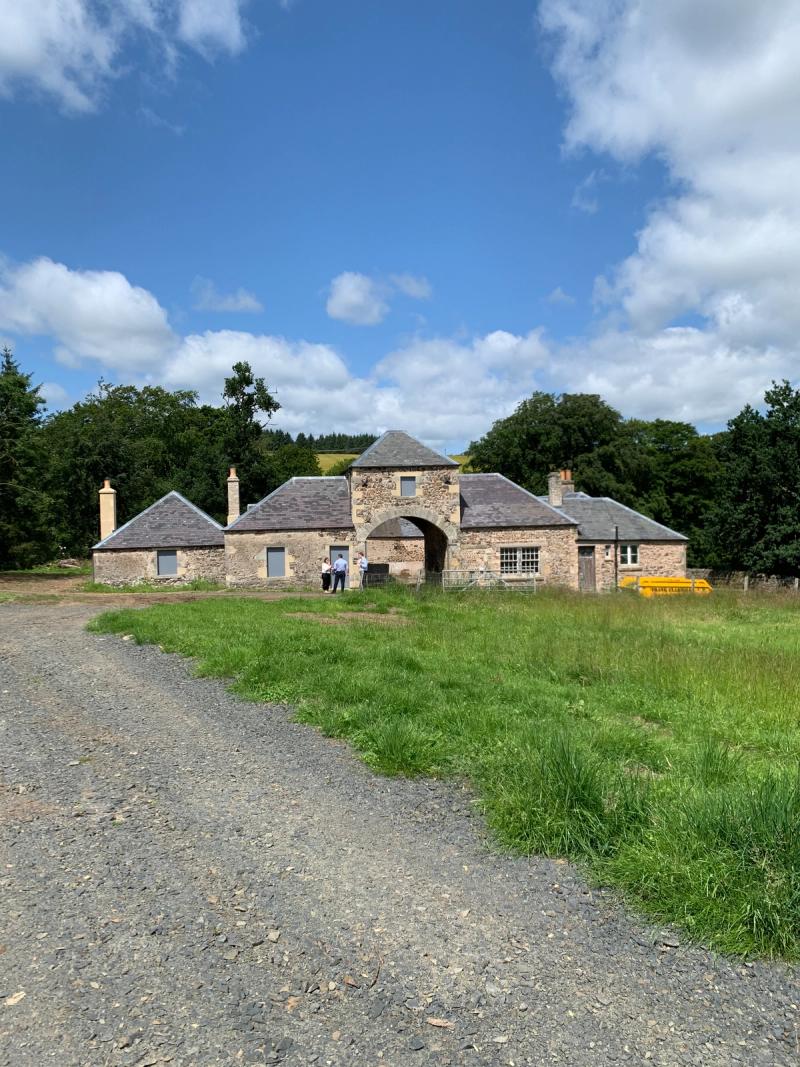 Registered as a “Building at Risk,” this Grade C-listed stable complex in the Scottish Borders features an imposing hayloft that announces the entrance to a cluster of barns and small cottages arranged around a central courtyard.