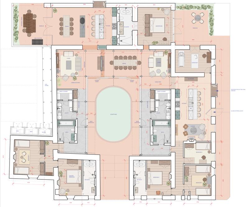 Structural glass oriel windows and floor to ceiling glazing contrast the rough exterior and enclose modern living spaces to ensure the buildings can be enjoyed for generations to come.
