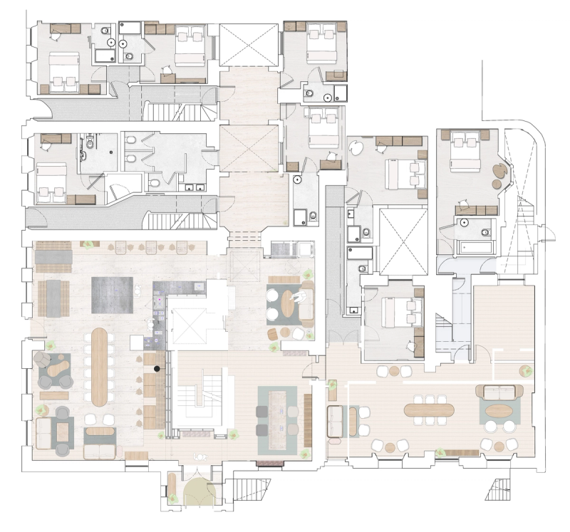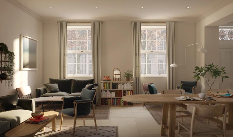 Formed of a collection of six restored, grade 2 listed Georgian townhouses, the layout rationalises a series of previously labyrinthine spaces and reinstates a more historically accurate plan form.